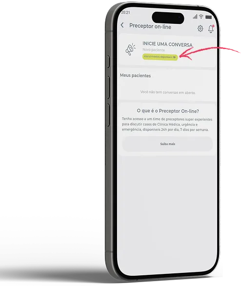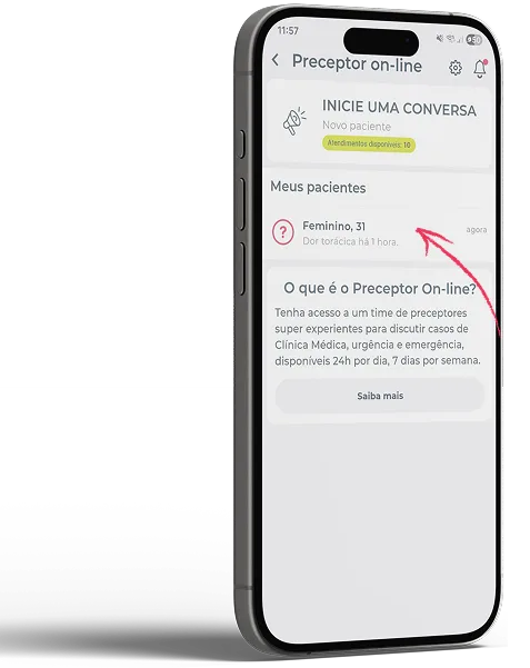 A qualquer hora do dia ou da noite, sempre que você quiser discutir um caso com um preceptor com experiência em Clínica Médica, basta clicar em Atendimentos Disponíveis e relatar a sua dúvida.