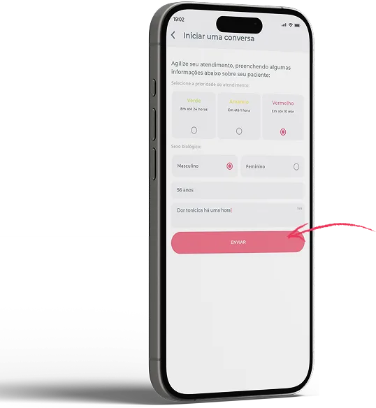 Complete as informações básicas sobre seu paciente – sexo, idade, queixa – e clique em enviar para ser atendido